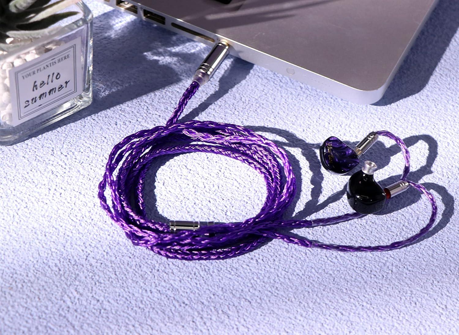 Linsoul Tripowin Zonie IEM Cable, 16 Core Silver Plated Earphone Upgraded Cords, 1.25m SPC in Ear Monitor Cable for KZ ZS10 PRO 2 AS10 PRO Tangzu Wan’er SIMGOT EM6L(Recessed 2pin, 4.4mm)(Grey)(Violet)